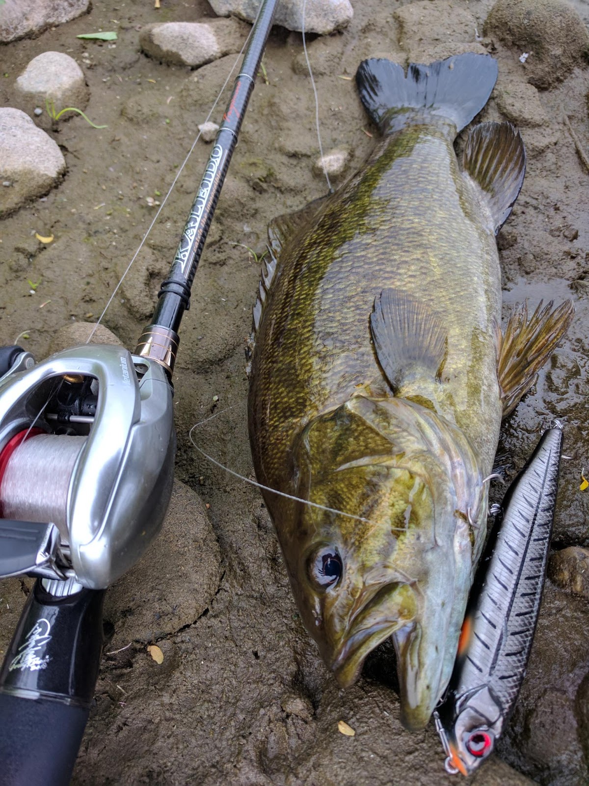 | 45cmでした。ピンぼけが残念。 川スモは酸欠しやすいと聞いたことがあるので、写真撮った後は速攻でリリース!